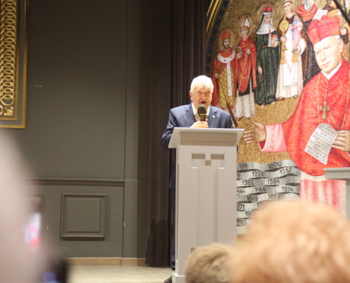 IV Pielgrzymka TMLiKPW na Jasną Górę za nami. To był dzień pełen wzruszeń i emocji. W Sali Papieskiej wszystkich przybyłych przywitał główny organizator Prezes Zarządu Głównego Adam Kiwacki. Uroczystość prowadził Ludwik Madej z Częstochowskiego Oddziału.