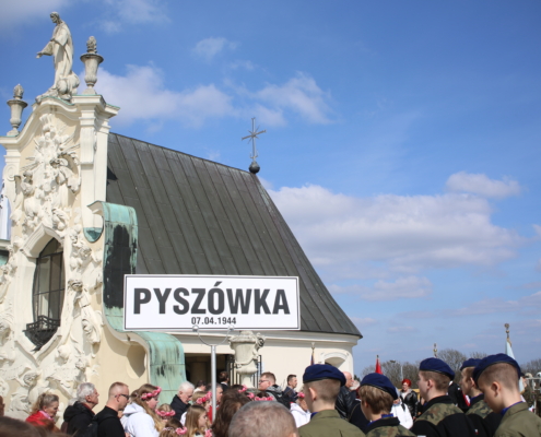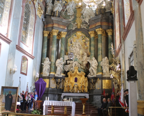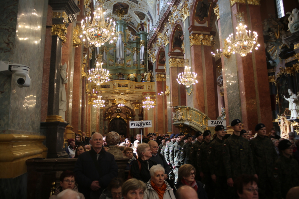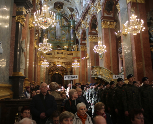 Mszę Świętą w asyście sztandarów celebrował ksiądz biskup Andrzej Przybylski. Całość uświetniała pięknym śpiewem i doskonale dobranym repertuarem Jaga Wrońska, a opiekę duchową nad pielgrzymami sprawował Paulin ojciec Jan Poteralski.