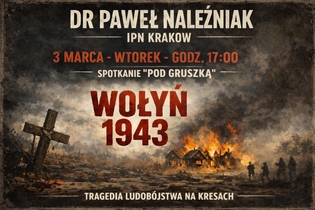 Kolejne marcowe spotkanie przed nami ! Zapraszamy wszystkich 3 marca we wtorek o godzinie 17:00 w Klub Dziennikarzy „Pod Gruszką” przy Bibliotece Kraków. Tym razem odwiedzi nas dr Paweł Naleźniak z krakowskiego IPN. Tematem będzie ludobójstwo na Wołyniu i w Małopolsce Wschodniej. Wstęp wolny. Będzie można uregulować składki, wesprzeć nasze działania i zakupić nasze wydawnictwa.